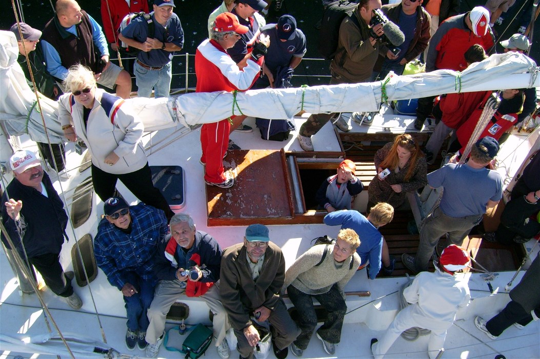 Po wstępnych powitaniach, gratulacjach i uściskach dłoni, na pokład weszły rodziny i dzieci dzielnych żeglarzy oraz całe witające grono vancouverskich Polaków.