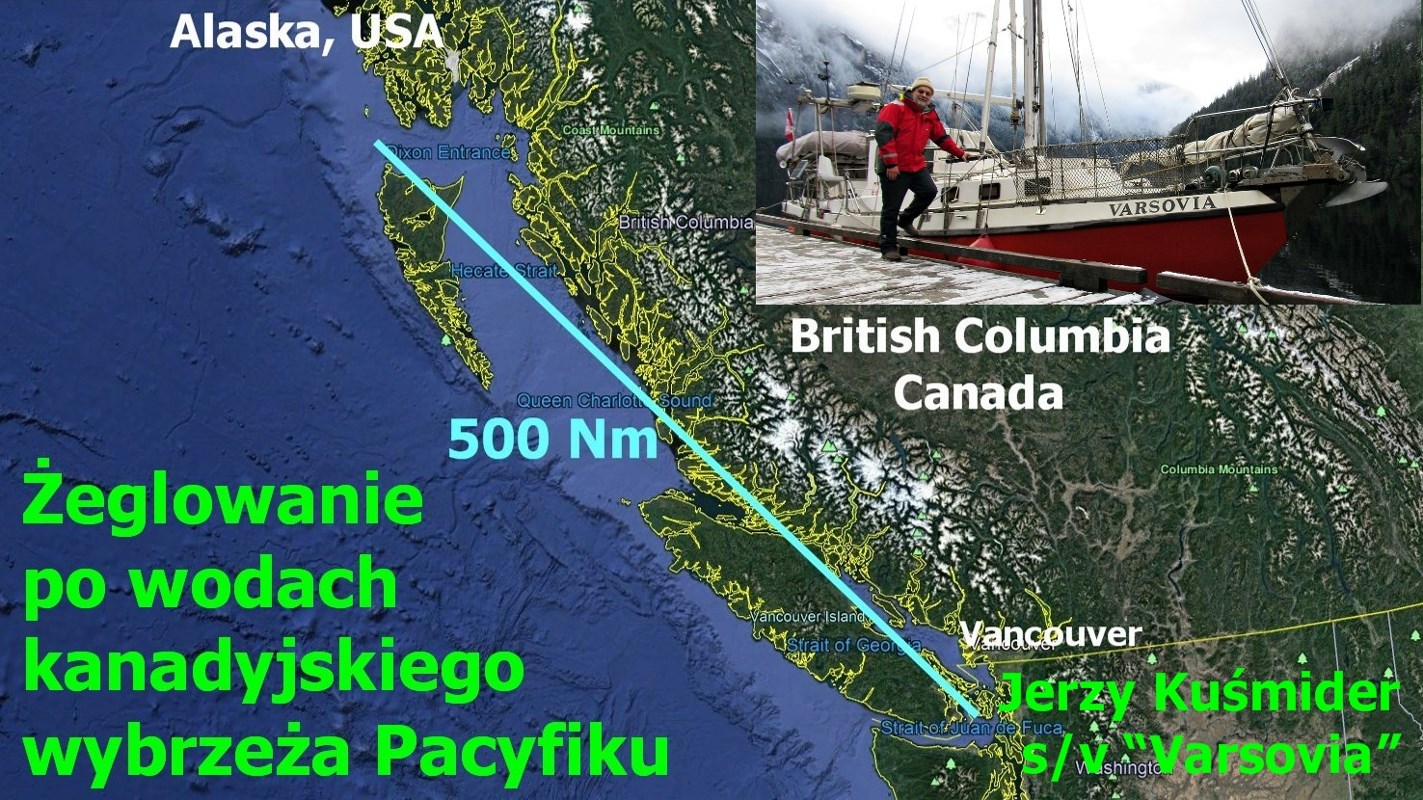 Coraz częściej różni żeglarze z Polski pytają mnie o warunki żeglarskie i możliwości pływania po kanadyjskim wybrzeżu Pacyfiku. Z tego powodu oraz dla zachęcenia innych jeszcze niezdecydowanych żeglarzy, zdecydowałem na napisanie trochę ogólnych informacji na ten temat. Może to będzie coś w rodzaju mini locji z odnośnikami, czyli linkami do opisów, zdjęć i filmów z różnych moich rejsów, które odbyłem na tym akwenie przez prawie 40 lat żeglowania na moim jachcie „Varsovia”.