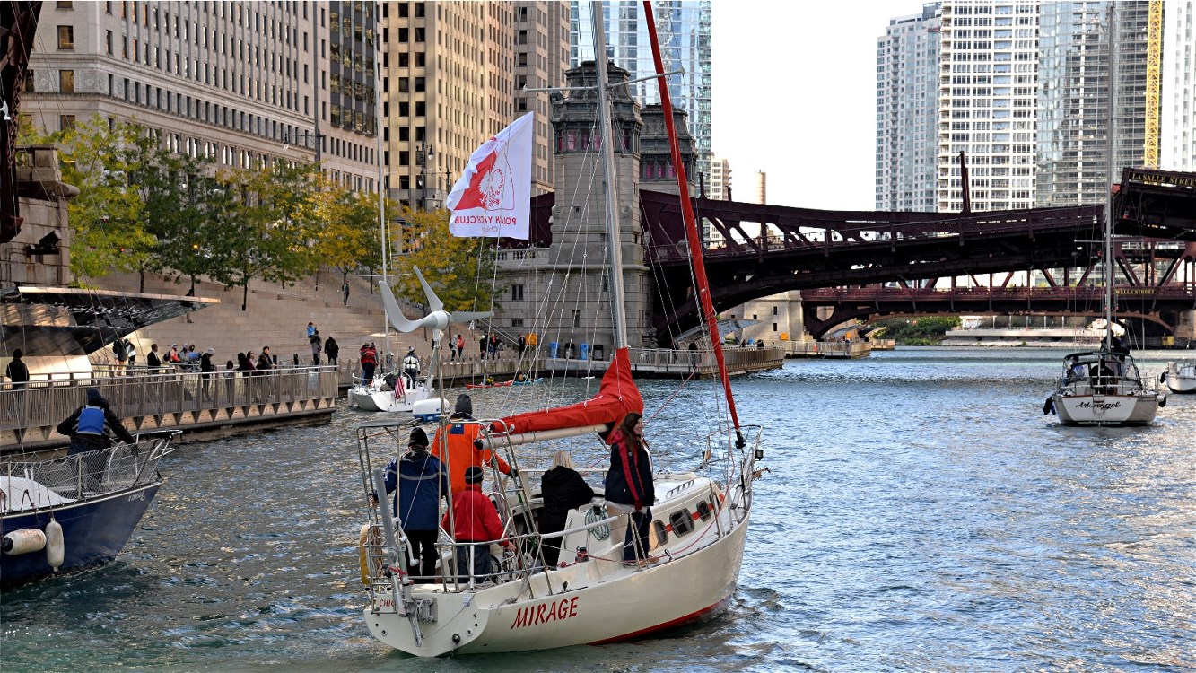Pod salingiem powiewała bandera „Polish Yacht Club Chicago”.