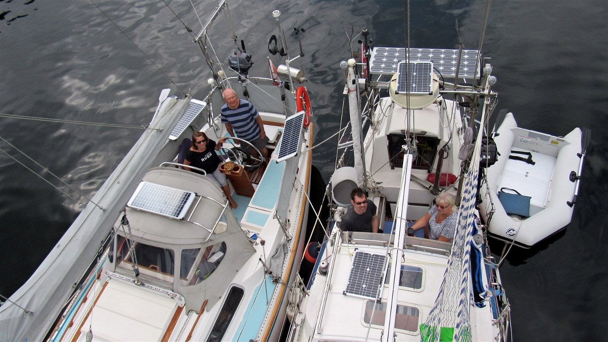 Dwie rodzinne załogi połączyły się w tratwę. „Varsovia”, wyjątkowo, bo aż pięć nocy nie podnosiła kotwicy. Na trzy noce do burty zacumował Włodek z Haliną na „5 Shillings”.