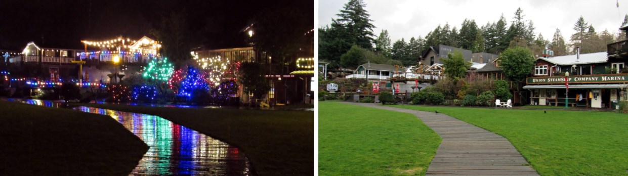 Lubię w styczniu przypływać na Bowen Island, bo widać tu atmosferę świąteczną. Niestety przez cały jeden cały dzień nie wychodziłem na spacer, bo padał ulewny deszcz. Jedynie poszedlem wziąć prysznic i zrobić kilka nocnych zdjęć tych kolorowych światełek.