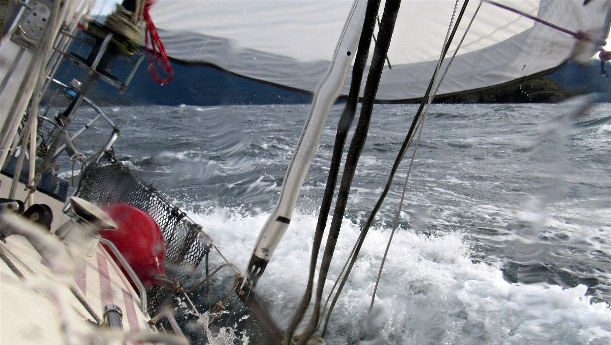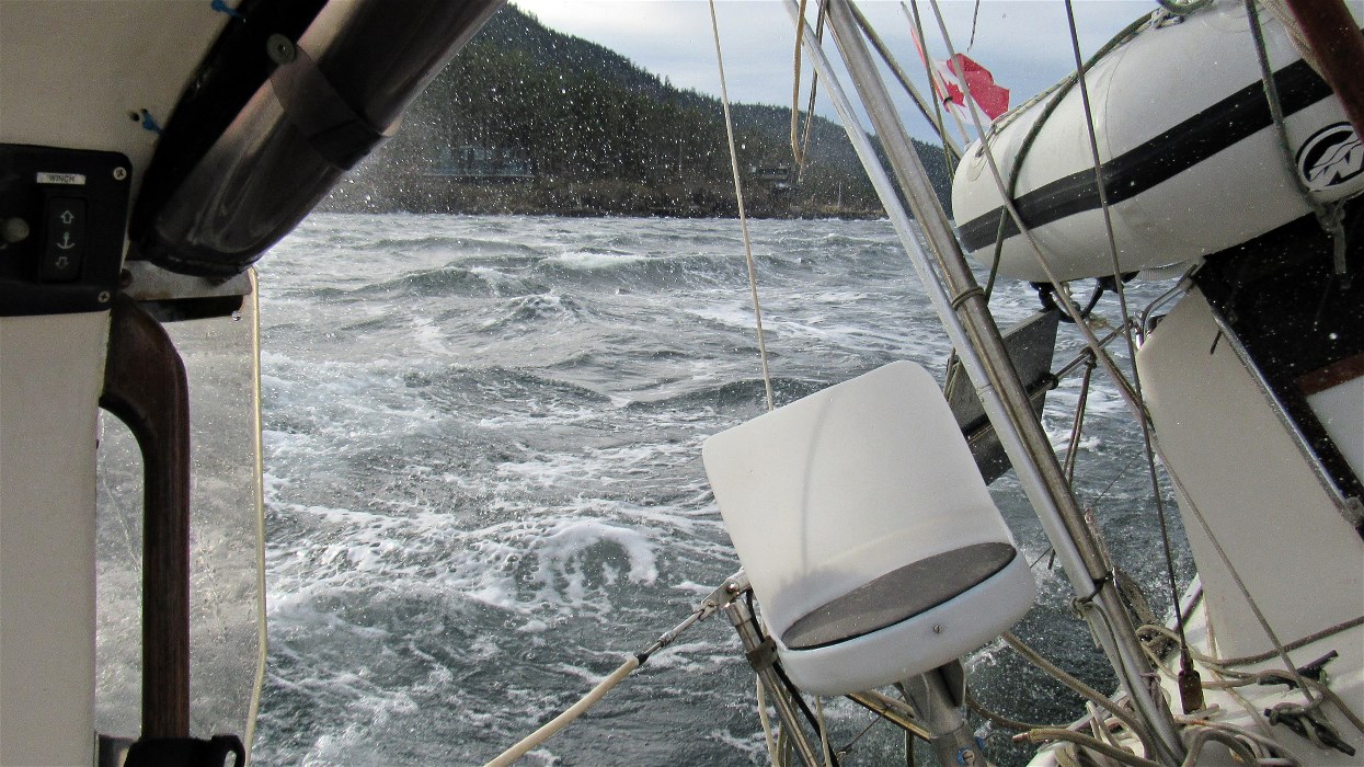Cztery Mile morskie na północ od tego miejsca, patrząc pod wiatr po otwartej wodzie, jest punkt obserwacji meteorologicznej Pam Rock. Później podano, że w tym czasie, kiedy ja tam płynąłem podmuchy były 36 węzłów.