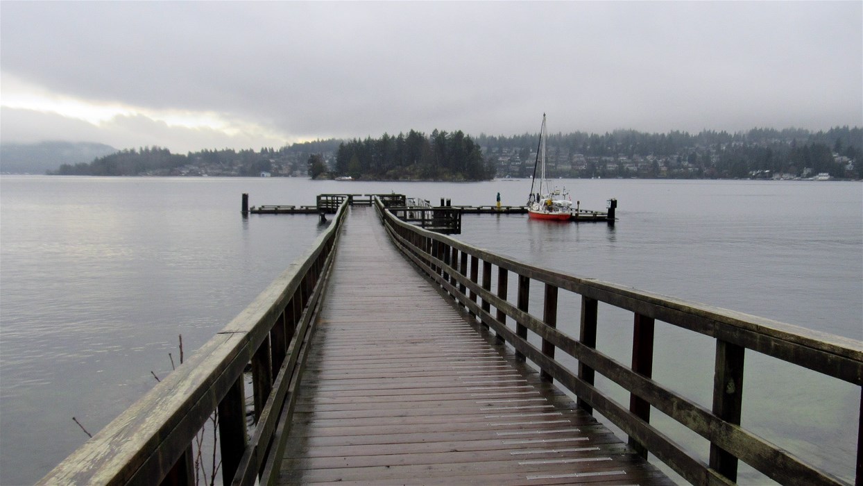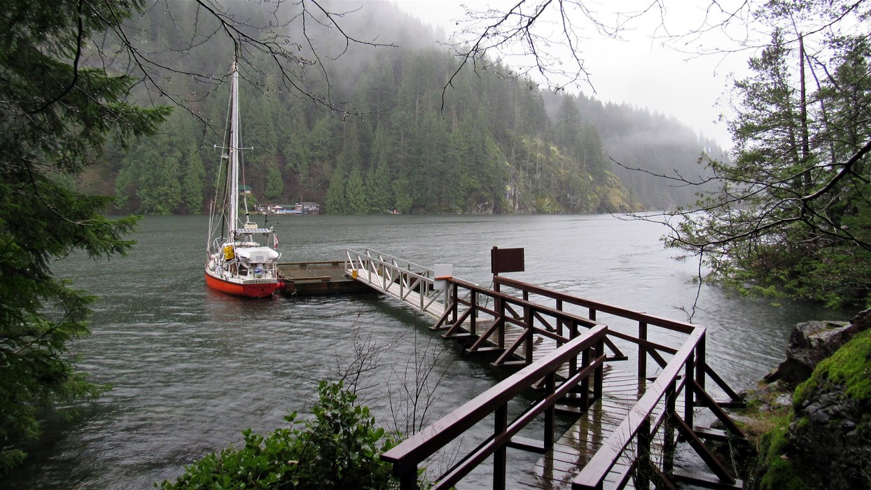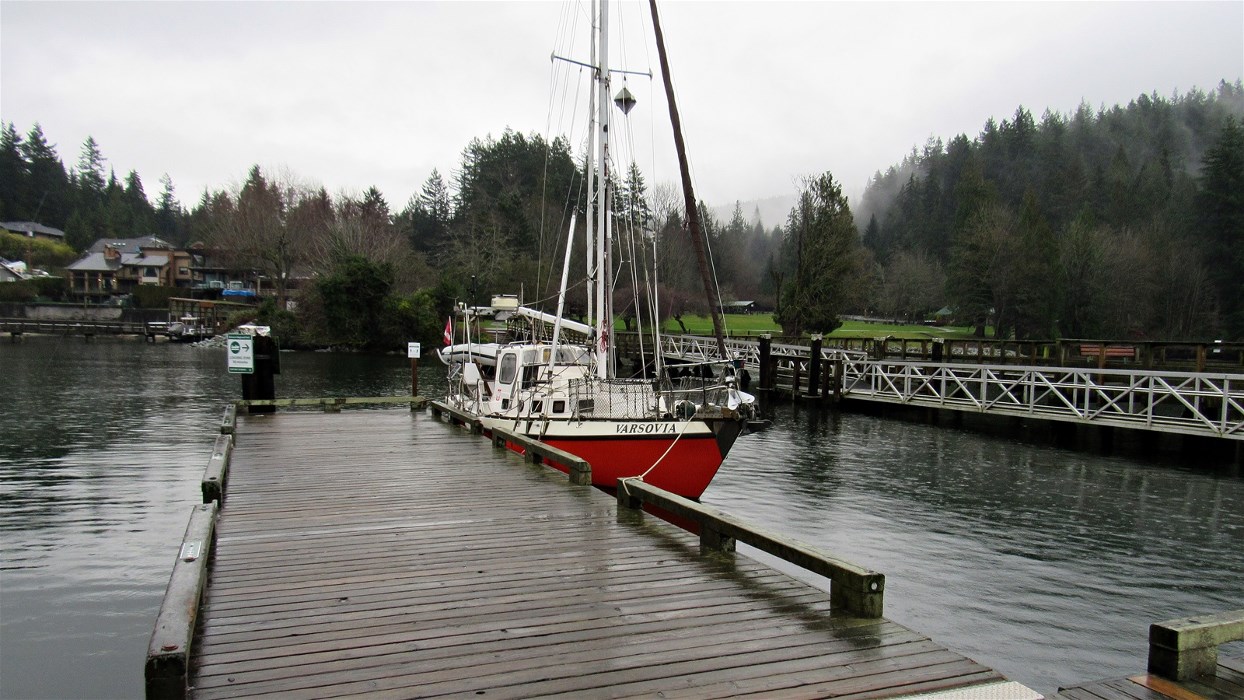 Pomost w Plumper Cove jest nie najlepszym schronieniem od wiatru. Podczas południowych wiatrów wchodzi tu fala ze Strait of Georgia i stanie nie jest zbyt przyjemne, bo bardzo rzuca łódka i pomostem. Bezdomni przyzwyczaili się do tego, im to nie przeszkadza i nie szukają innych osłoniętych miejsc. Tym razem prognozy wiatrowe, wprawdzie sztormowe były z kierunku północnego i dlatego zostałem tu na trzy noce. Bezdomni sąsiedzi chyba myśleli, że mają nowego kolegę już zostanę z nimi do wiosny. Dodatkową zaletą tego miejsca są leśne dróżki do spacerowania, co bardzo uatrakcyjnia pobyt i dlatego nie spieszyłem się.