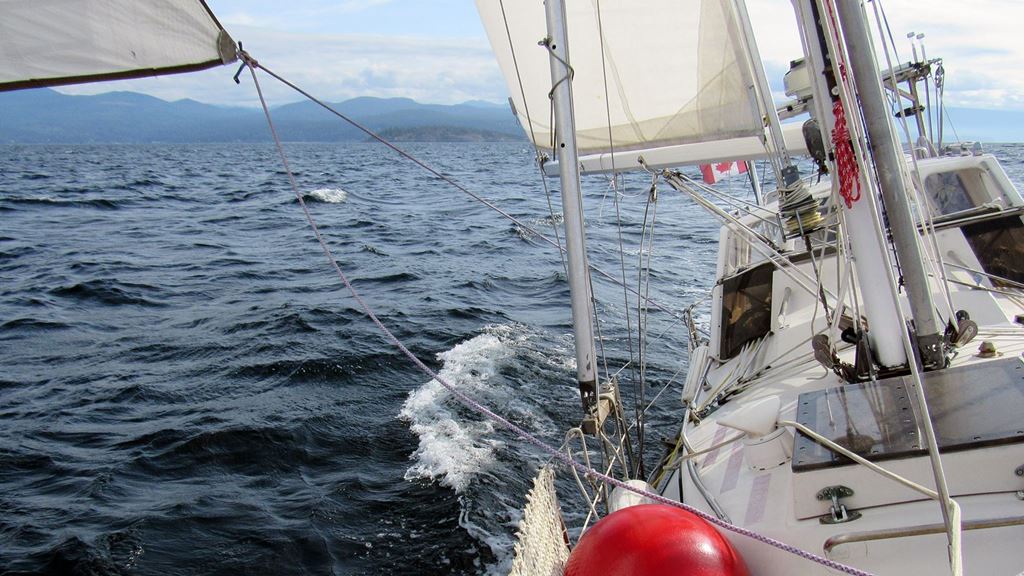 Gdzie płynąć? Najlepiej popatrzeć na prognozę pogody. Miało wiać z południa, to z Vancouver popłynąłem z wiatrem na wyspę Lasquity, która jest na środku Strait of Georgia, a potem wiatr zmienił kierunek to znowu z wiatrem pożeglowałem na południe do Nanaimo na Wyspie Vancouver.