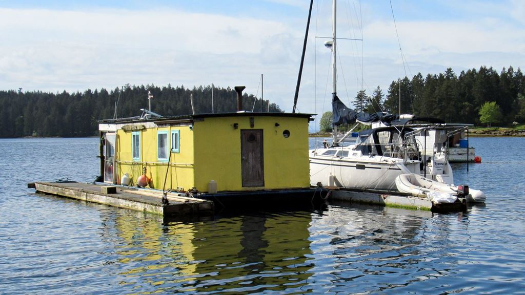 W takich lub podobnych skromnych domkach na wodzie mieszka dość dużo ludzi. Często cumują do nich całkiem ładne jachty.