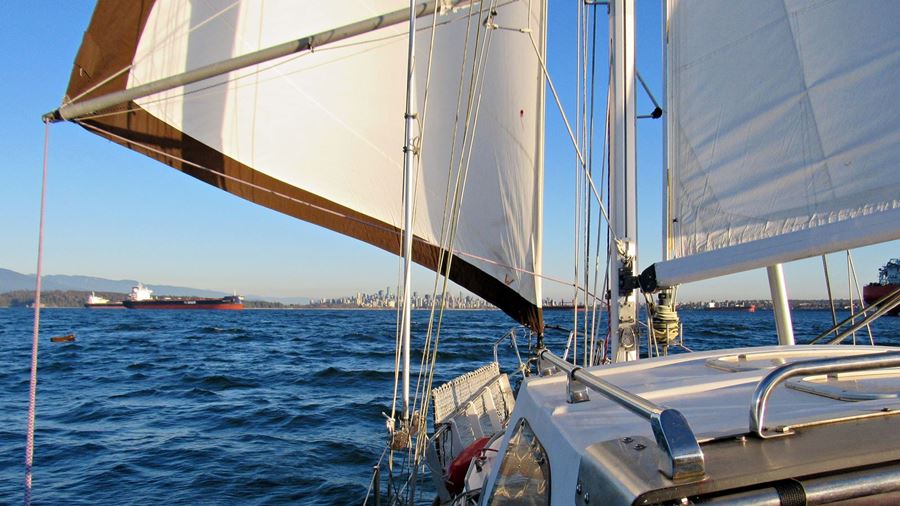 Wracając do Vancouver, miałem wymarzone żeglarskie warunki. Świeciło słońce i wiał umiarkowany wiatr, ale na wodzie było trochę zimno, bo to już listopad.