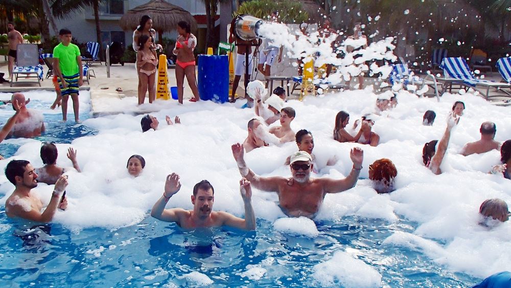W Vancouver zimno i śnieg a tutaj w basenie też śnieg, ale z piany serwowanej przez obsługę resotu.