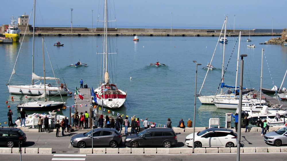 W basenie jachtowym tego portu trafiliśmy na regaty wioślarskie.