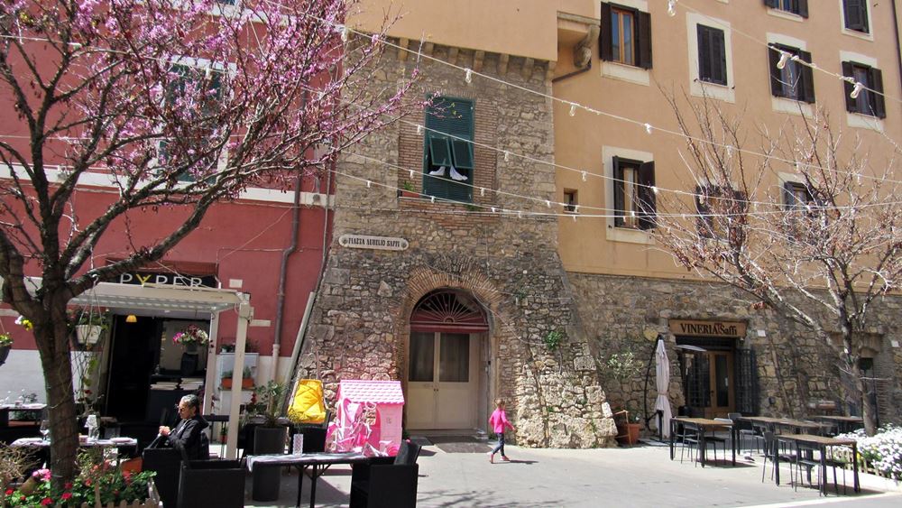 Włosi lubią jeść w restauracyjkach pod gołym niebem. Południowe słońce często mocno grzeje i dla ochrony przed nim udekorowano ulicę nad restauracyjkami kolorowymi parasolami.