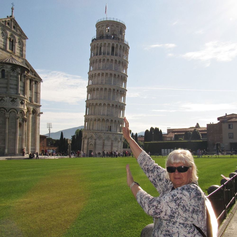 Ela nawet próbowała przytrzymać, żeby przypadkiem nie przewróciła się ta budowla. Takie fotografie robiło sobie bardzo dużo turystów.