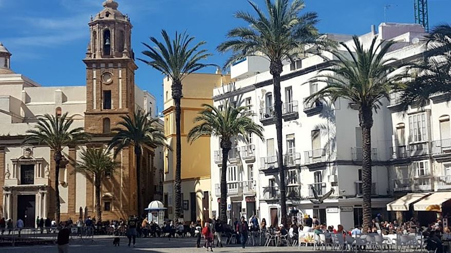 Spacerkiem przeszliśmy wąskimi uliczkami przez starą część miasta na drugą stronę półwyspu, na którym położony jest Kadyks. Po drodze mijaliśmy liczne placyki z kościołami i kafejkami na otwartym powietrzu.
