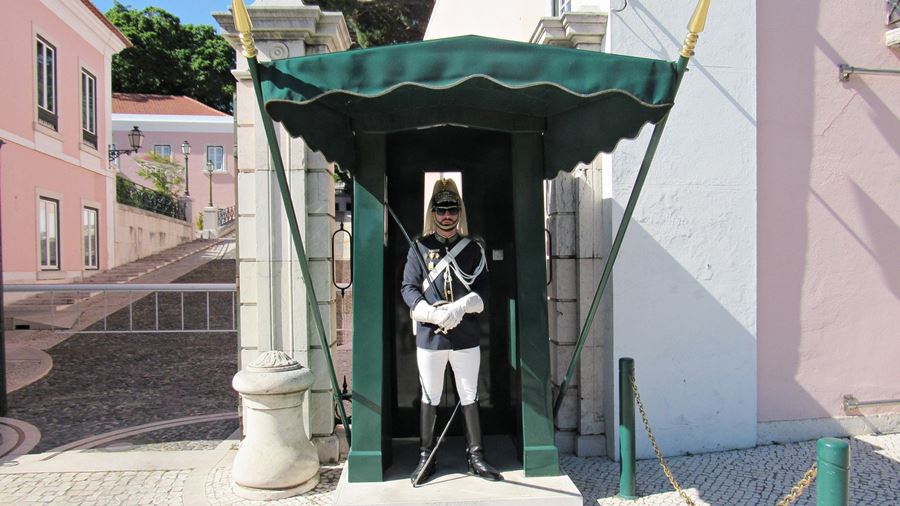 Warta honorowa przed rezydencją Prezydenta Portugalii.