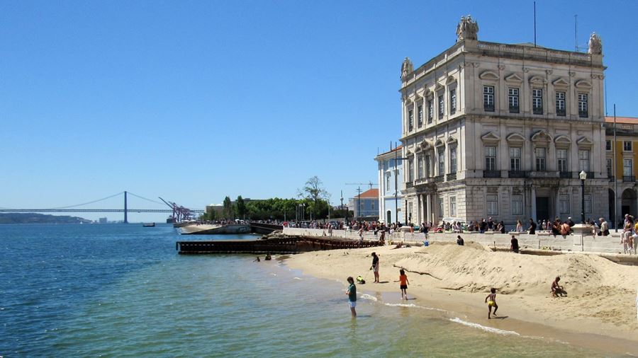 Ozdobny Łuk triumfalny Rua Augusta wybudowany w XVIII wieku. Łuk ten jest nad ulicą prowadzącą od placu położonego przy brzegu rzeki w górę do centrum miasta. Ulica ta jest popularnym deptakiem turystycznym z licznymi kafejkami na środku, bo ruch kołowy jest tam zamknięty.