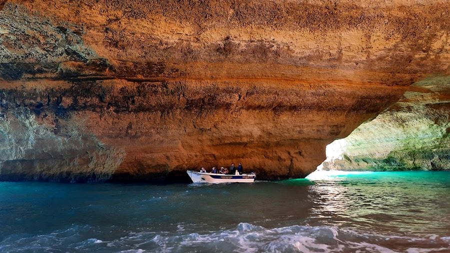 Najbardziej sławna i chyba największa jest Benagil Caves, do której zmierzają chyba wszystkie te łódki turystyczne. Nasz skiper szybko popłynął do tej groty, zanim dotarły następne, bo praktycznie na taką kilkogodzinną wycieczkę wszyscy wypływają mniej więcej o tej samej porze.