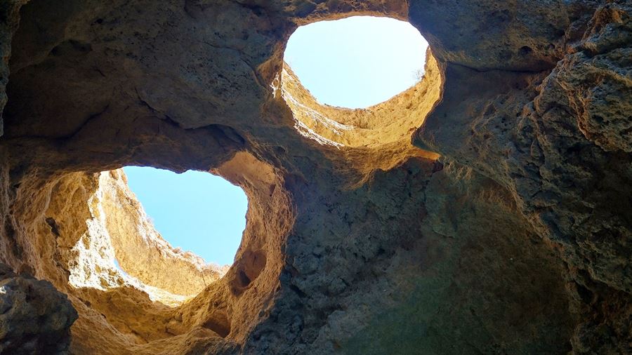Duże wrażenie robią naturalne otwory w sklepieniu tych grot. Promienie słoneczne świecą tam jak lampa, oświetlając wnętrze takiej jaskini.