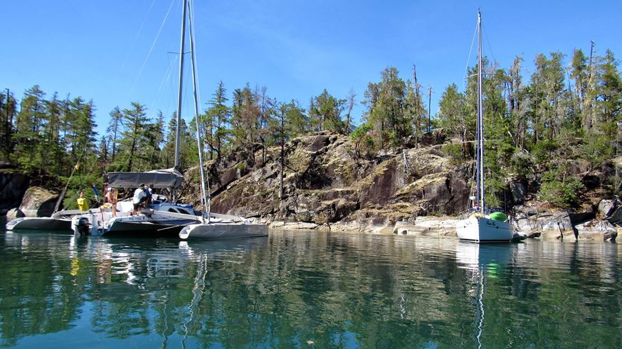 Trzy polonijne jachty żaglowe przypłynęły do Desolation Sound. Tak nazywa się rejon położony około stu Mil morskich na północ od Vancouver, gdzie jest bardzo dużo pięknych zatoczek i wysp. Jest tam Marine Park, gdzie można podziwiać naturę, jeszcze mało zniszczoną przez cywilizacje człowieka. Rejon prawie nie zamieszkały, bardzo chętnie odwiedzany przez licznych wodniaków z Prowincji Kolumbii Brytyjskiej.