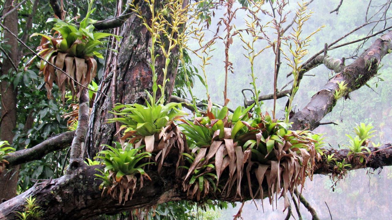 Duża wilgotność w powietrzu i pył wodny powoduje, że na drzewach widać było ciekawą roślinność.