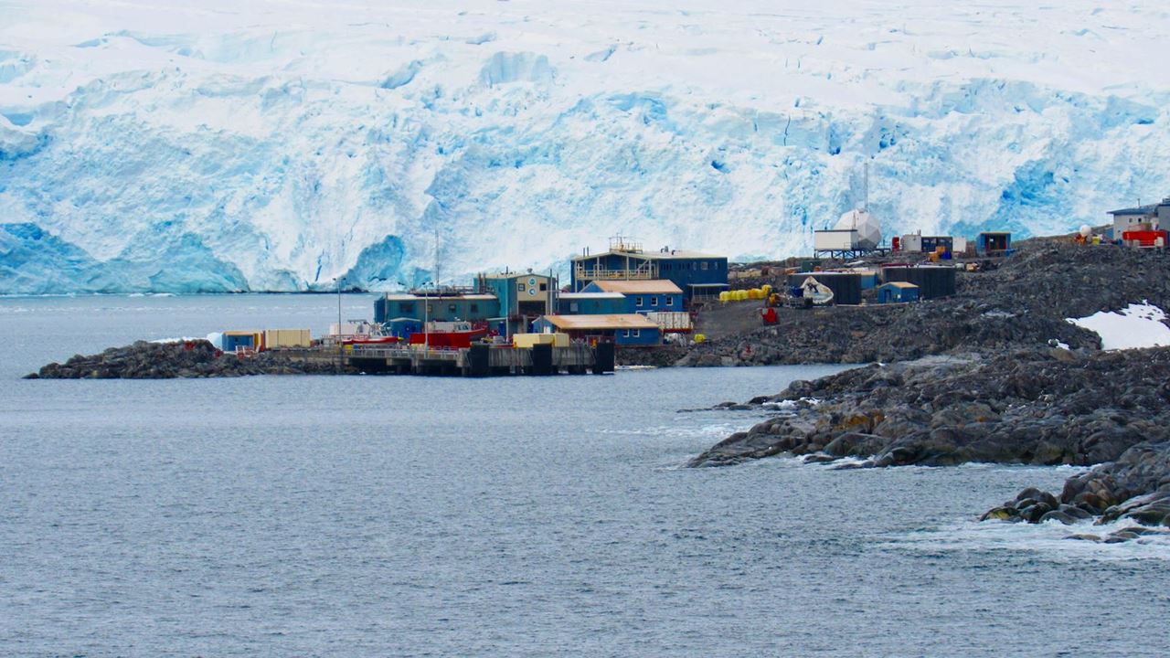 W zatoce tej znajduje się argentyńska stacja badawcza. Na zdjęciu widać ją na wysokiej górze lodowej.