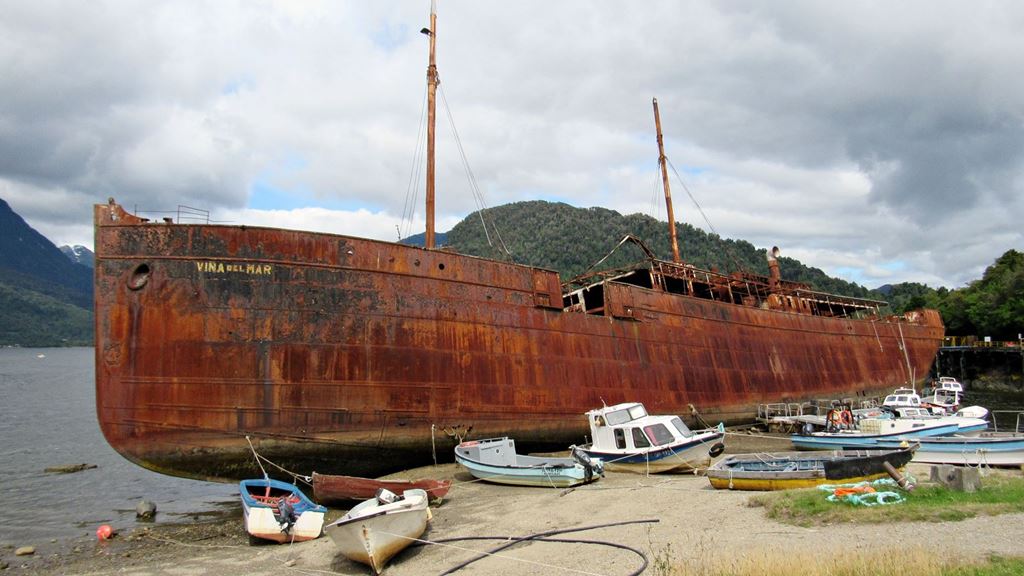 Wracając do portu poszedłem zobaczyć, chyba jedną z głównych lokalnych atrakcji, wrak statku. Niedaleko brzegu znajduje się Viña del Mar, statek pasażerski z 1911 roku, który rozbił się u wybrzeży Puerto Chacabuco w 1963 roku.